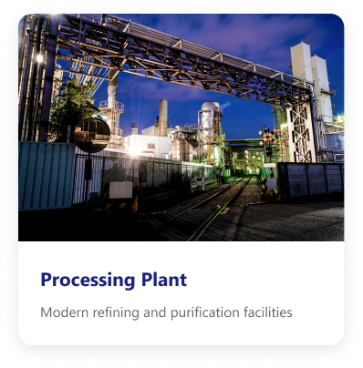 Complete vertical integration ensures quality control at every stage. From raw ore extraction to refined products, we maintain the highest standards throughout our production chain.
